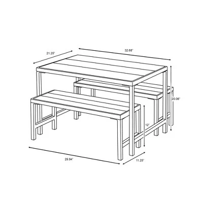 - Includes 2 benches and 1 table for a complete look