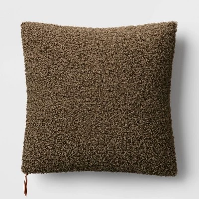 Add a touch of cuddly texture to your living room or sitting space with this Oversized Teddy Boucle Toss Square Throw Pillow from Threshold™. Made from faux fur with soft filling, this oversized square throw pillow showcases a fuzzy boucle texture in a solid hue for a plush look. Best of all, it comes with a removable, machine-washable cover with a zipper closure, making it easy to give the pillow a quick refresh.