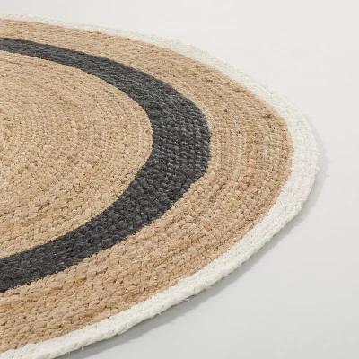 Add a dash of natural flair to your home with the Round Bold-Stripe Jute Area Rug from Hearth & Hand™ with Magnolia. Made from 100% jute, this five-foot round rug has a richly textured, earthy look. It’s finished with a braided design featuring bold stripes in natural tan, black and cream hues for added flair. Easy to blend in any decor, this flat-pile rug lends versatile placement options for anywhere in your home, from the family room to your living room or any other high-traffic areas.
