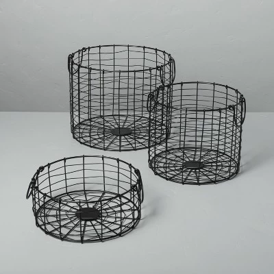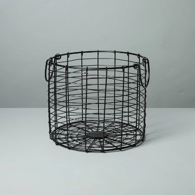 Bring a versatile accent to your home decor with this Round Wire Storage Basket with Handles from Hearth & Hand™ with Magnolia. Featuring a wired construction, this metal storage basket helps you see through your essentials with ease. This black storage basket mixes well with your decor whether you organize your books, blankets or any other items. Easy to move with the built-in handles, this round storage basket can displayed along your entryway, living room or any other area.