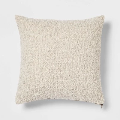 Create an interesting look in your home by accenting your resting spot with this Woven Boucle Square Pillow with Exposed Zipper from Threshold™. Beautifully woven, this boucle throw pillow adds textural flair to your seating arrangement. Designed from soft fabric to give you a comfy surface to lean against, this solid-color throw pillow easily integrates into your existing color scheme. Toss it on the sofa, armchair or any other spot to create a perfect relaxing spot.